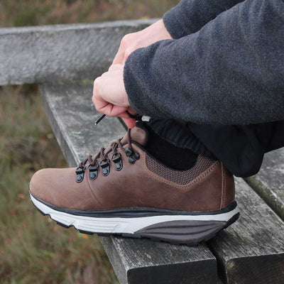 Stilren MBT-sko i fullnarvat läder och praktisk pjäxsnörning. Activate-sulan ger en mjuk och skön känsla på promenaderna. MBT Terra är en modell som är lätt att matcha till det mesta.